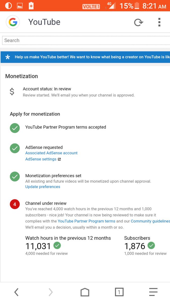 Hello, Team YouTube my channel is complated the 4k+ watch hour & 1k+ subscribers in previous 365 days & but my monetization is not enabled please guide us Channel Link https://www.youtube.com/A2hack pic.twitter.com/Fn3tDL2y9Z