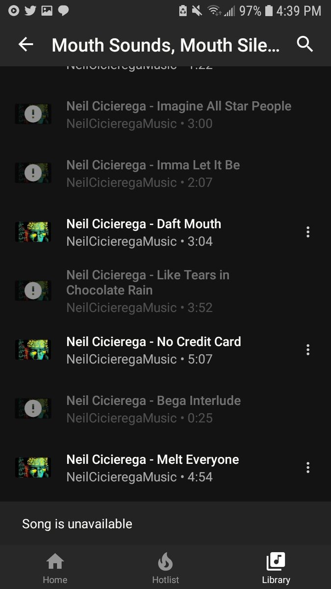 On playlist created by me and some created by other users which I have saved have multiple songs that are "unavailable". The playlist work fine on the YouTube app. But on Youtube Music they are unavailable. Not a big deal, just a bit inconvenientpic.twitter.com/KvDt7hOYyP