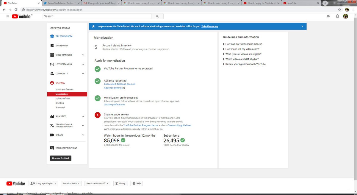 Hi Team YouTube Thanks for guide me, previous 45 days I have completed monetization conditions, PLZ monetize my channel as soon as posible, for my youtube carrier. Plz guide us.pic.twitter.com/EDkbcNygaK