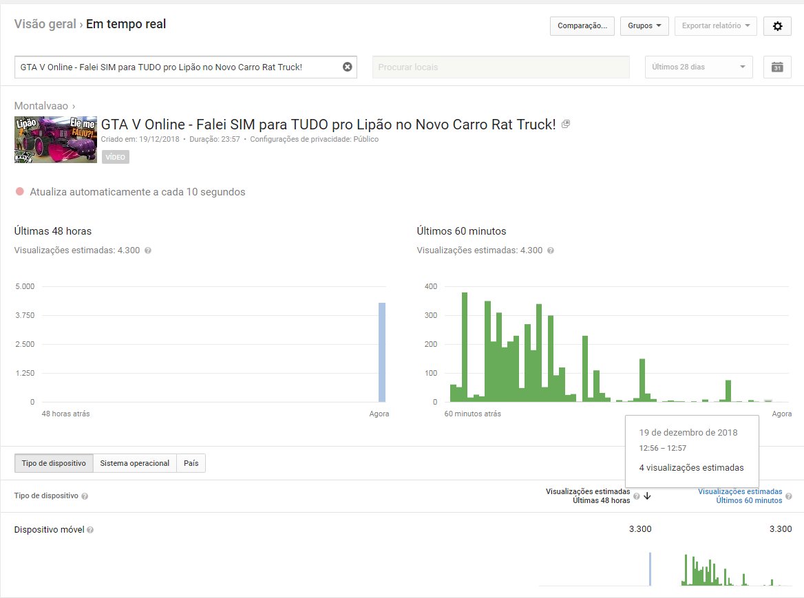 Olá. Já estamos cientes do problema que causou baixa nas visualizações em tempo real no Analytics e/ou na página de exibição do YouTube. Isso já está normalizado no momento. Obrigado pela paciência.
