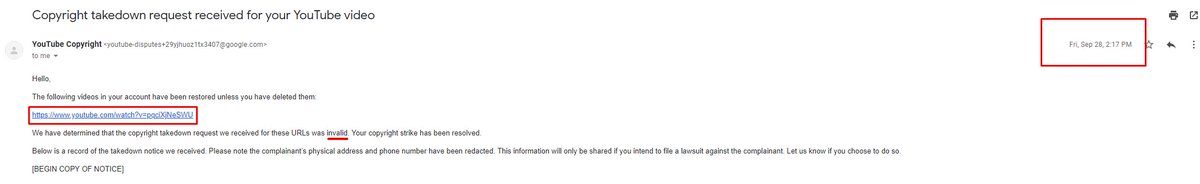 why do I KEEP getting a copyright strike plus video take down, for a copyright takedown request that is invalid?? read the photos please.!!pic.twitter.com/yuwlmp5BzA