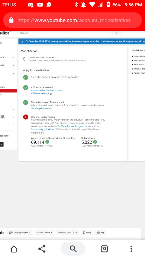Hi @TeamYouTube i have over 1k subs and 60 watch time. I have not had monitisation enabled for a month. Why?