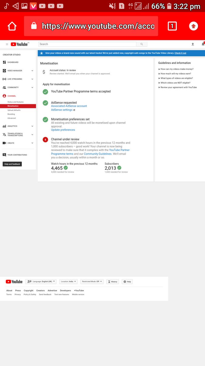 @TeamYouTube Dear Team YouTube I have already completed 4k hour And 1k Subscriber in previous 365 Days and my channel is under review till One month .but monetization is not enable . please guide us.... https://www.youtube.com/channel/UC8XpjxkWEI2Ttq5NX5gOROA …pic.twitter.com/GSG3eTeCi4