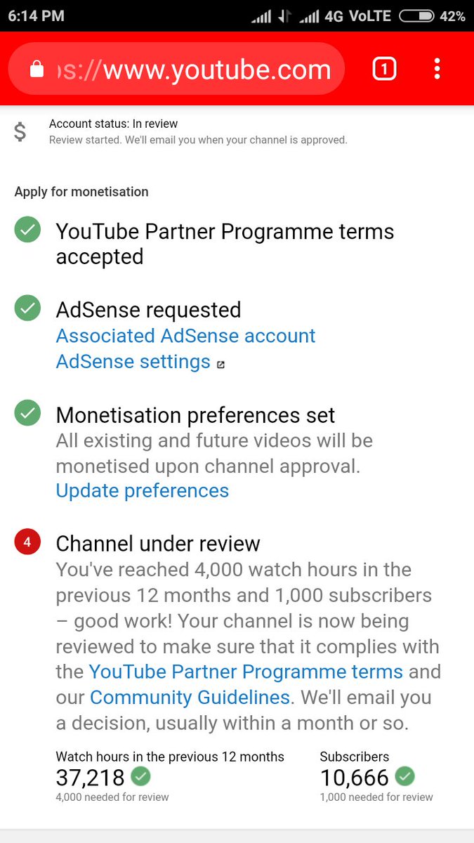 @TeamYouTube Hello YouTube team, my thousand subscribers and 4000 hours were completed, about a month has been done in the under review and now there are about 36,000 watch time and 11,000 subscriber, 10 million views. When monetize please please tell mepic.twitter.com/y6DA6Y9K92