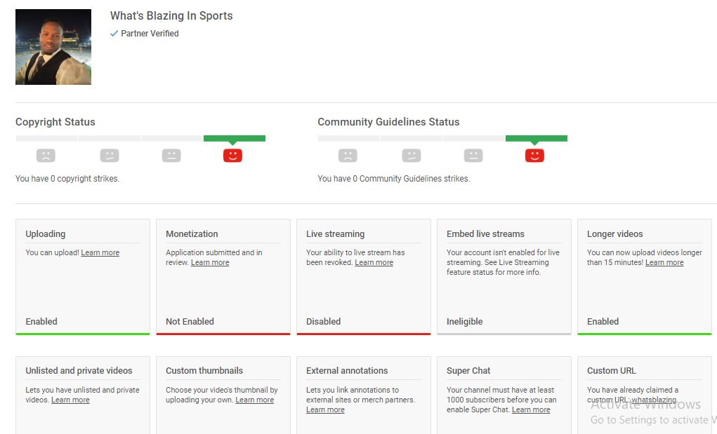 @TeamYouTube My youtube channel, https://www.youtube.com/user/whatsblazing …, Live steam ability has been booked over 3 months with no real reason why? Restricted date started 9/23/18 to current date 12/27/18. I attached a screen shot so you can reference. please help with restoring my live streampic.twitter.com/r5oYvZiSug