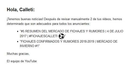 Hola, me pasa esto con cada vídeo, hay alguna forma de que no lo hagan más? Porque subo vídeo y a las horas me mandan el correo como que está todo bien, no entiendo que hablar de fútbol y salte el botón amarillo... Se devuelve lo que ha generado el vídeo?? @TeamYouTubepic.twitter.com/N6iePX3NQL