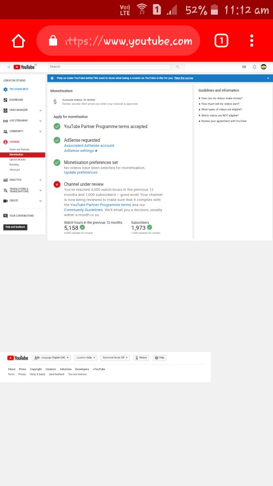 Hello team youtube, having issues on views and watch time is not accurate on 19 and 20 Dec 18, and still not getting any update regarding monetization...I have completed my threshold....as I was mention in earlier tweet.... Hope you understand Thanks with regard...