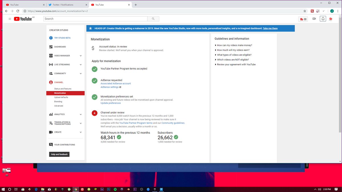 @TeamYouTube good morning , i deleted dozens of vids from my channel but the watch time is sill there , do i have to wait untill my watch time and views add up before review again for monitization ??