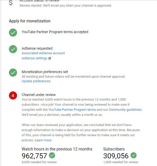 @TeamYouTube Almost A month ago I tweeted u for enable my monetization in YouTube We cross more than 4000 hrs watch time and 1K+ subscribers. But still you guys did not review my channel. If anything wrong then tweet me. That's my channel link https://www.youtube.com/channel/UCKL-0KBNPphZUw0r8DqX29g … Enable itpic.twitter.com/S5KehpjJpH
