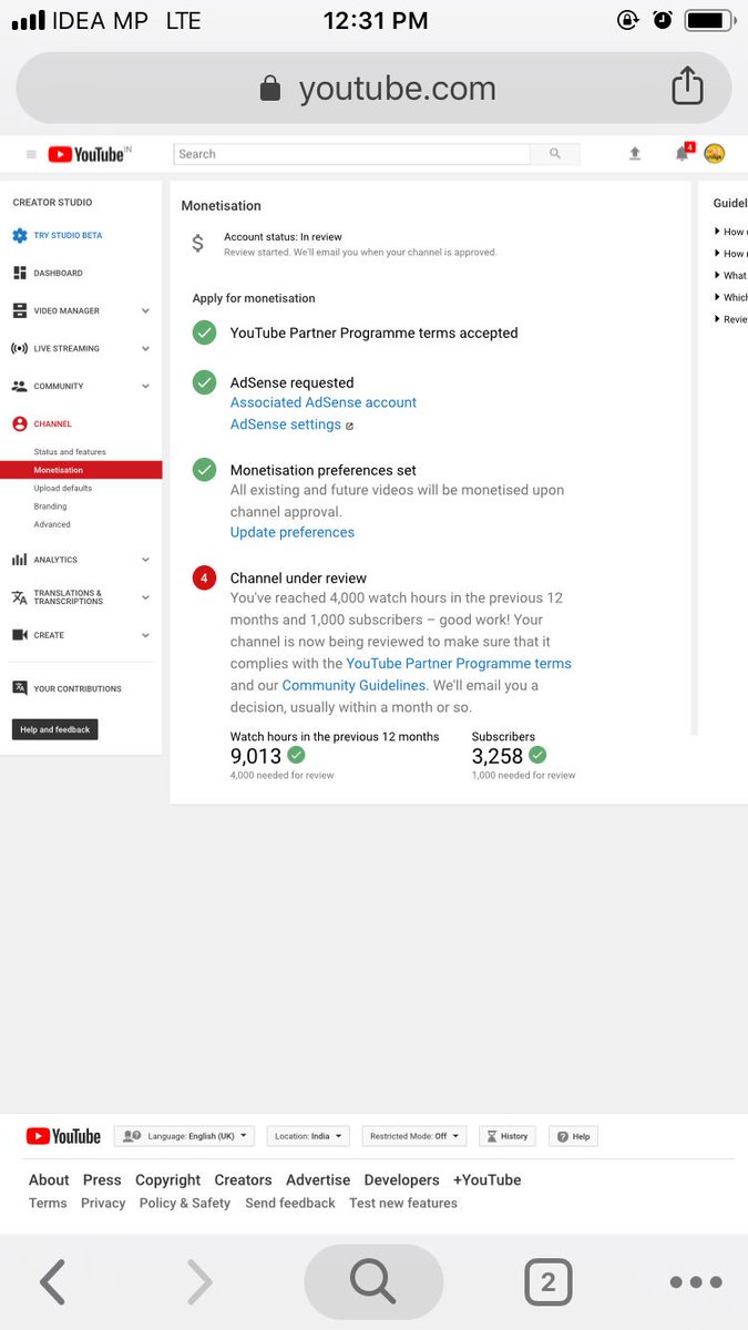 @TeamYouTube please help i have Complete criteria 4k Watch hours 1k subscribers. Please Monitise my channelpic.twitter.com/35be56Xvqa