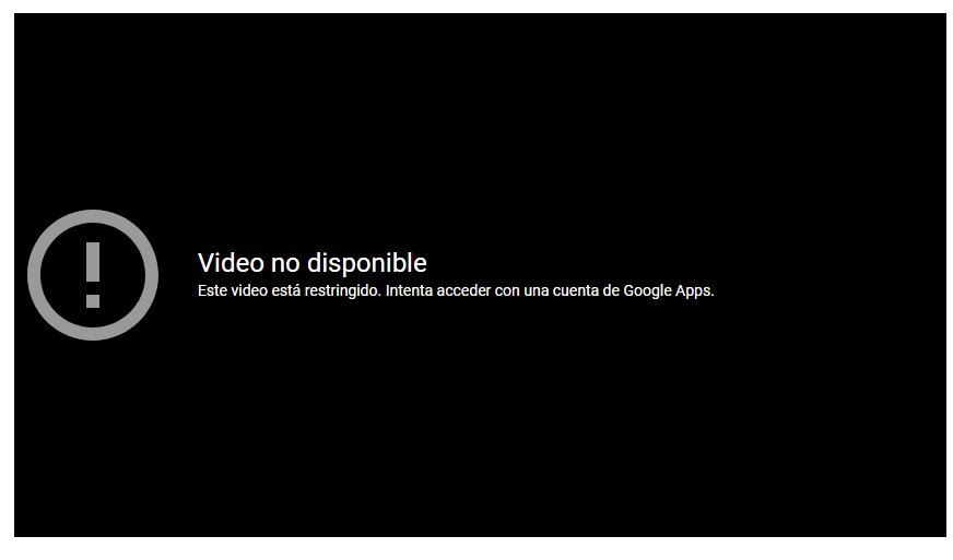 Alguien sabe qué hacer cuando aparece esto en Youtube? "Video no disponible. Este video está restringido. Intenta acceder con una cuenta de Google Apps."