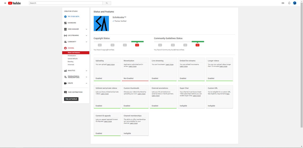 Thanks for checking it! For us to understand this better, could you share a screenshot of your channel's 'Status and features' page? Keep us posted.