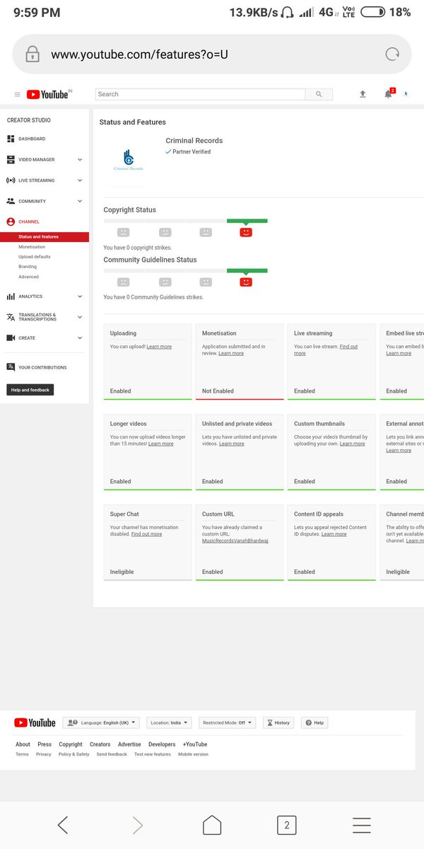 @TeamYouTube i Have 4,000 Hours Watchtime And 1,000 Subscribers On My Channel in Last 365 Days.But Monetization Of My Channel is Not Enabled And Cummunity tab is also not given