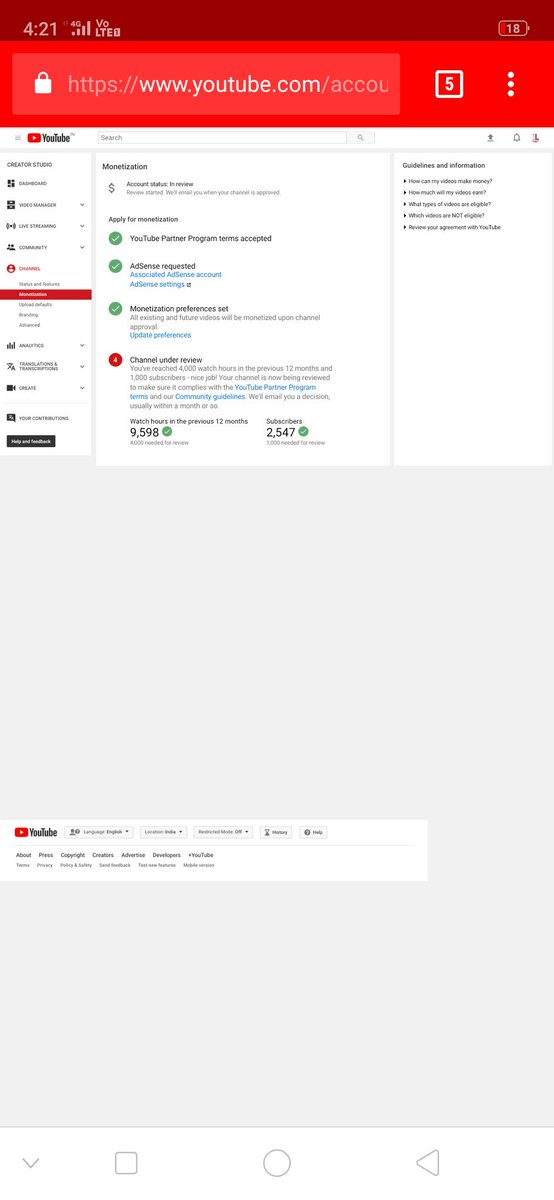 @TeamYouTube Hello YouTube team my channel is completed 1k subscribers and 4k watch hours in previous 365 days but my channel is under review please help me. Channel name- INTERESTING LIFE Channel URL- UCsHw22e2Dpx1L2hg02aR8NA?view_as=subscriberpic.twitter.com/CSzPaZK75D