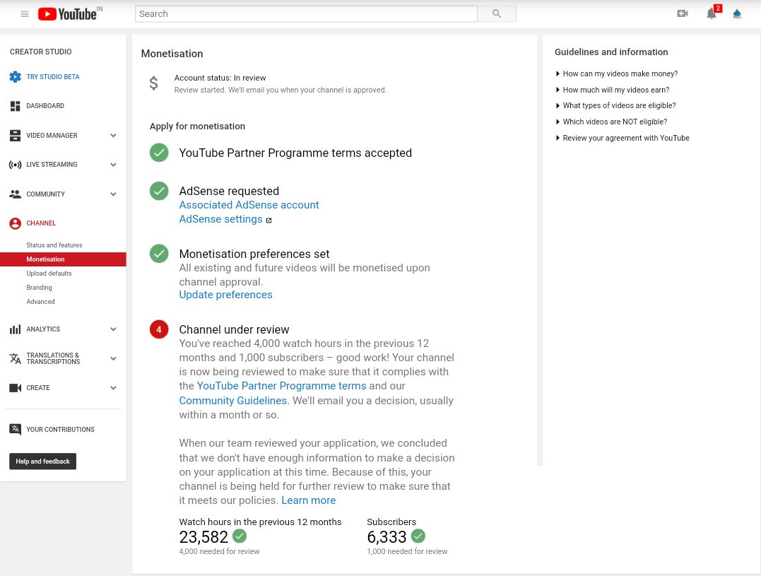 Thanks for reaching out. Could you tell us at what stage of the review process your channel is on? Sharing a screenshot of your monetization page will help us too: https://yt.be/help/3Eg4 . Keep us posted.