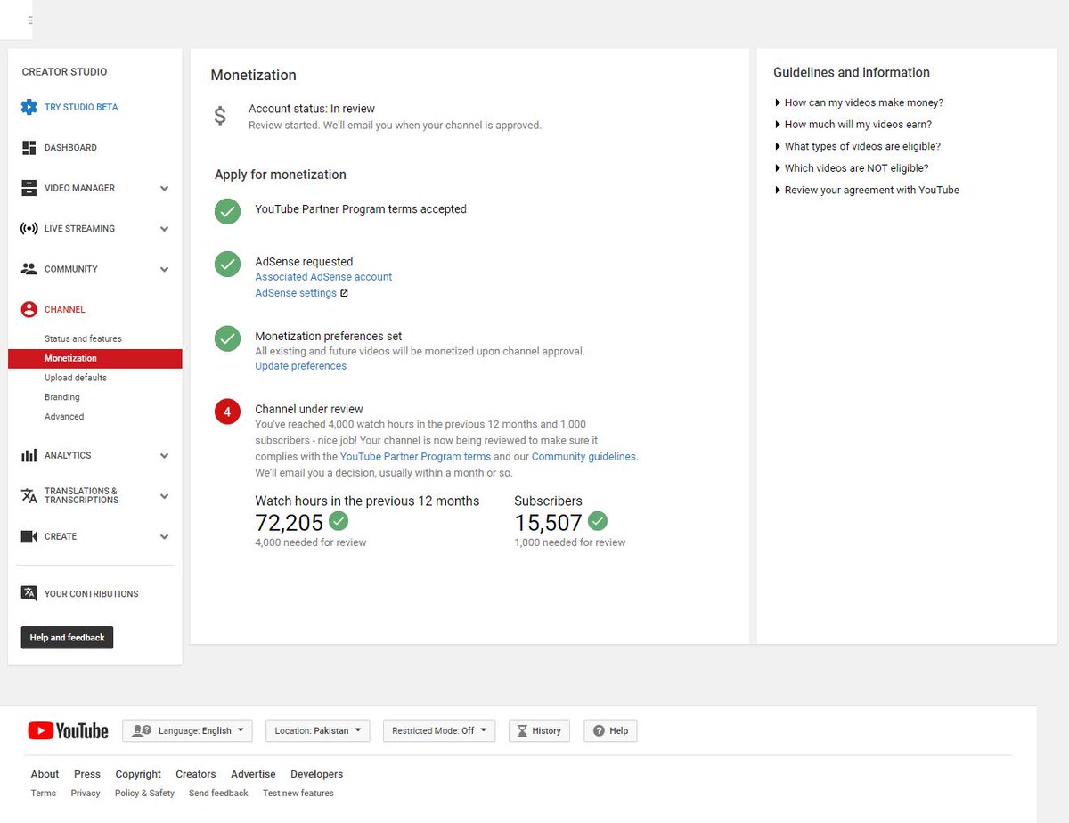 Dear, @TeamYouTube my channel has been investigating for a long time. I really like video production and I will be very happy if the confırmation and monetization process is fast. I have a screenshot. My channel link >>https://www.youtube.com/channel/UCEjQZEZBq1NjPQXT0gPZhZQ …pic.twitter.com/kDQajLMlEb