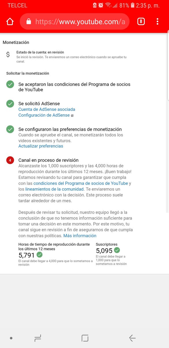 @TeamYouTube sigo esperando la monetización y nada por que demora tanto ya me estoy asta desanimando a seguir con mi canalpic.twitter.com/9bpgZgII8p