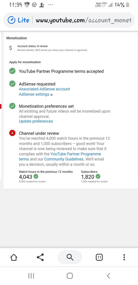@TeamYouTube Dear team youtube i have already completed 4k hour 1k subscriber in previous 365 days and my channel is under riview till one month. but monetization is not enable. pls guide us...