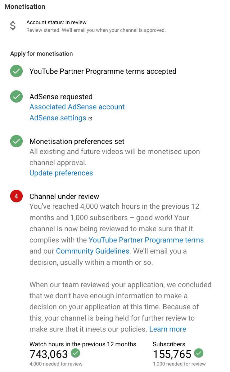 @TeamYouTube Dear youtube, I have reached 150.000+ subscriber and im trying open ads for 100 days. I have seen a lot of youtuber could able to use ads with 2-3K subs. I want you to take a look on my channel again. https://www.youtube.com/channel/UCTACwJNUjIIyBJPZfe3rvWw …pic.twitter.com/rqNqHvFGOZ