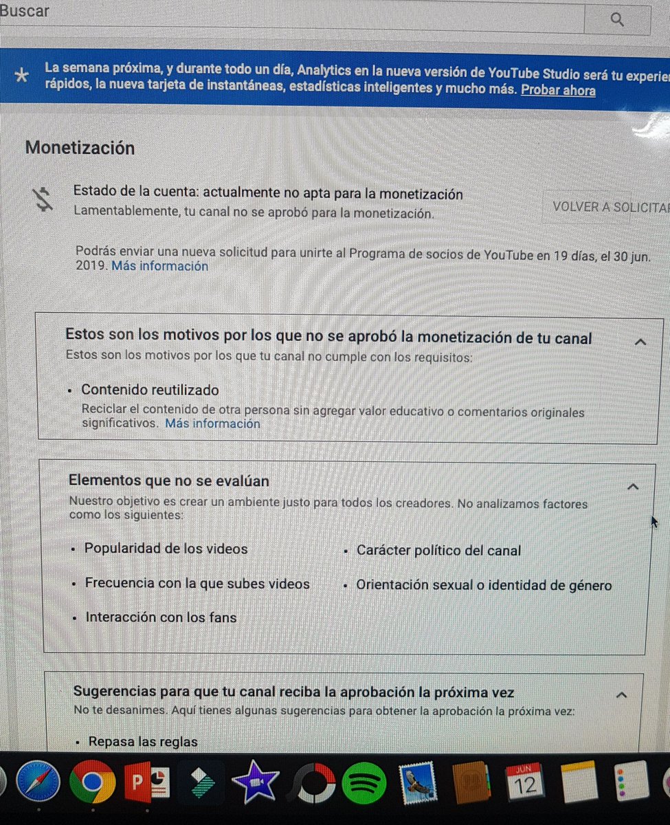 Hola. Si tu contenido ha sido considerado como reutilizado significa que hemos encontrado material que coincide con el de otro o es similar. Aquí más información sobre nuestras políticas: http://yt.be/help/AsbB . Recuerda que también puedes aplicar de nuevo en 30 días. Saludos.