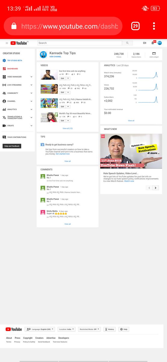 Hello @TeamYouTube @YouTube @YTCreators My channel is Completed 1k Subscribers and 4k watch hours in previous 365 days but my channel is still Under Review, Please help me To Enable My Channel Monetisation. Channel Name - Kannada Top Tips Channel URL- https://www.youtube.com/channel/UC3O5Y1swHfHY7Tt717zCDIA … Txpic.twitter.com/OfiYb6RLTA