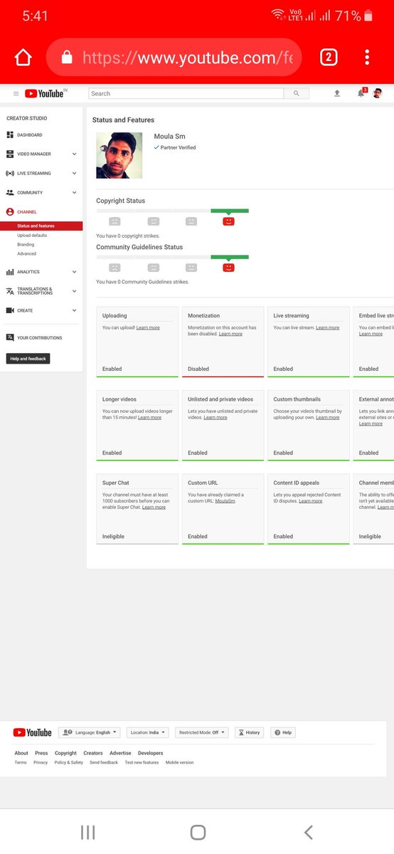 @TeamYouTube hello YouTube team my monetization disabled Please re enable my monetization