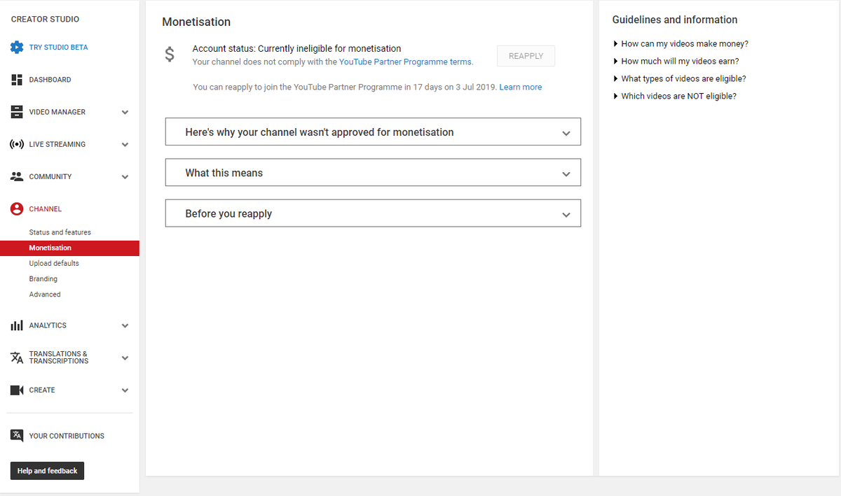 This is my channel's Monetization page. Please help me. Thank you very much!pic.twitter.com/uzjoD9xbzL