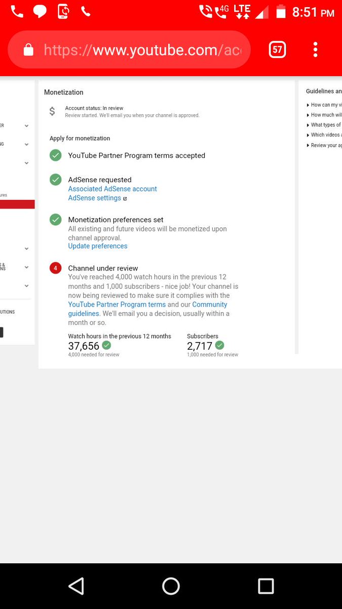 My channel has been under review.i am well over the required watchtime and subscriber count.