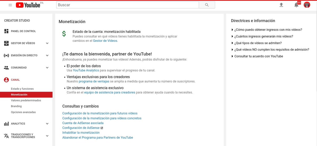 Hola. Para poder estudiar mejor tu caso, ¿podrías enviarnos una captura de pantalla de la pestaña Estado y funciones, así como la de Monetización? Quedamos atentos.
