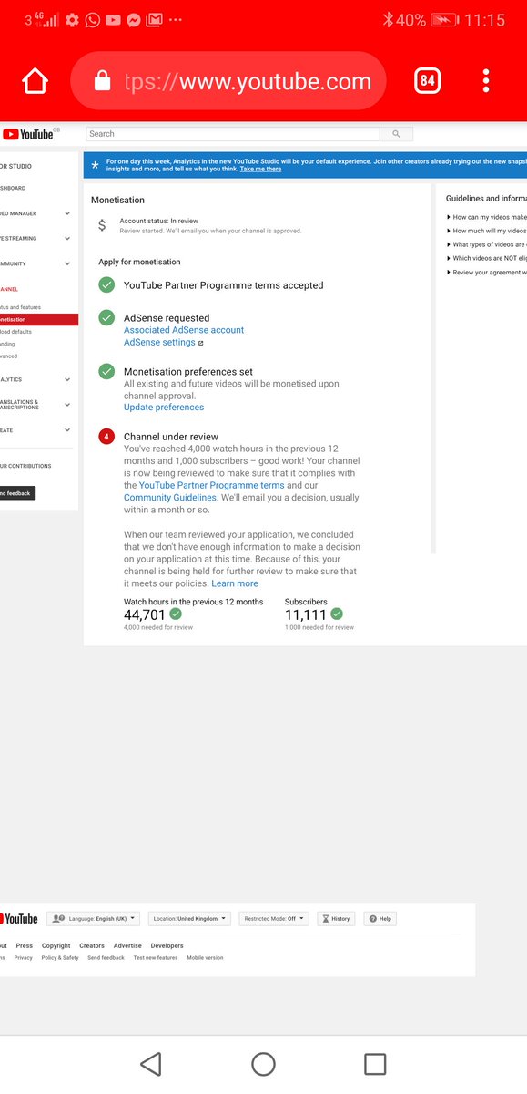 @TeamYouTube I have been waiting for Monetization for a total of 4 Months now. It says I am under review. Please can you look into my channel https://www.youtube.com/user/Mutamz Records TV please thank you.pic.twitter.com/UuLyUacZpW