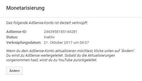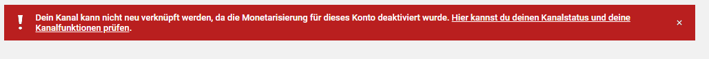 @YouTube @YTCreators Bei meinem Kanal wurde die Monetarisierung gesperrt (obwohl ich bisher nie etwas monetarisiert habe...)