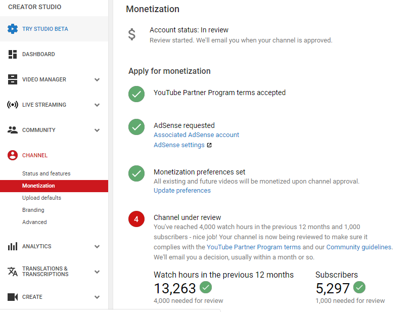Hello @TeamYouTube My channel is completed 1k subscribers and 4k watch hours in previous 365 days but my channel is still under review. I mailed many times but I did not get any answer.Please help me. Channel : https://www.youtube.com/channel/UCEiIOqWfHKxQxrrwLkhl4gw …pic.twitter.com/VdoYTOvNtS