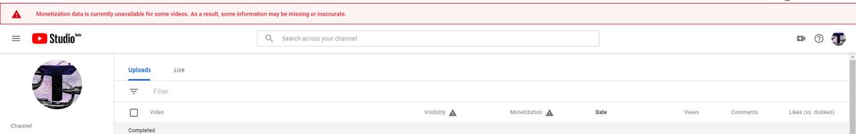 @TeamYouTube Went into the creator studio and saw this message pop up. Is this a problem on my end, or just a glitch in the system? My channel link is: http://youtube.com/c/ToxicTazz pic.twitter.com/AVZnoo9wTR
