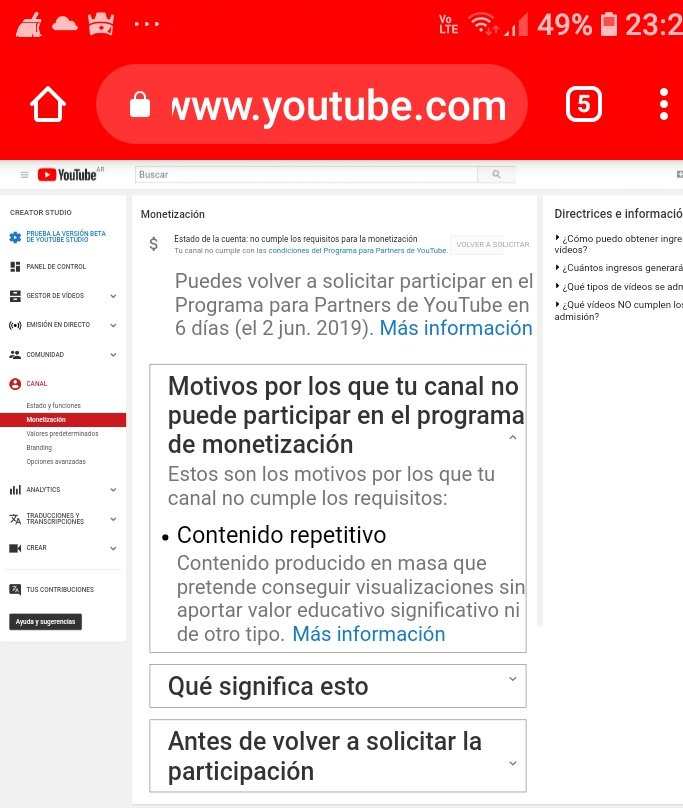 Hola Fernando. Tu canal ha sido revisado y ahora está aprobado para YPP. Esto fue un error en la revisión, cuando lo chequeamos vimos que tu canal es compatible con el YPP. El feedback ha sido compartido con el equipo de revisión, sentimos que esto haya sucedido. ¡Saludos!