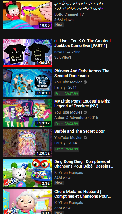 I have never seen ANY of these in my life, nor do I watch videos on Youtube which cost me money. I have not watched a children's show from another country either.