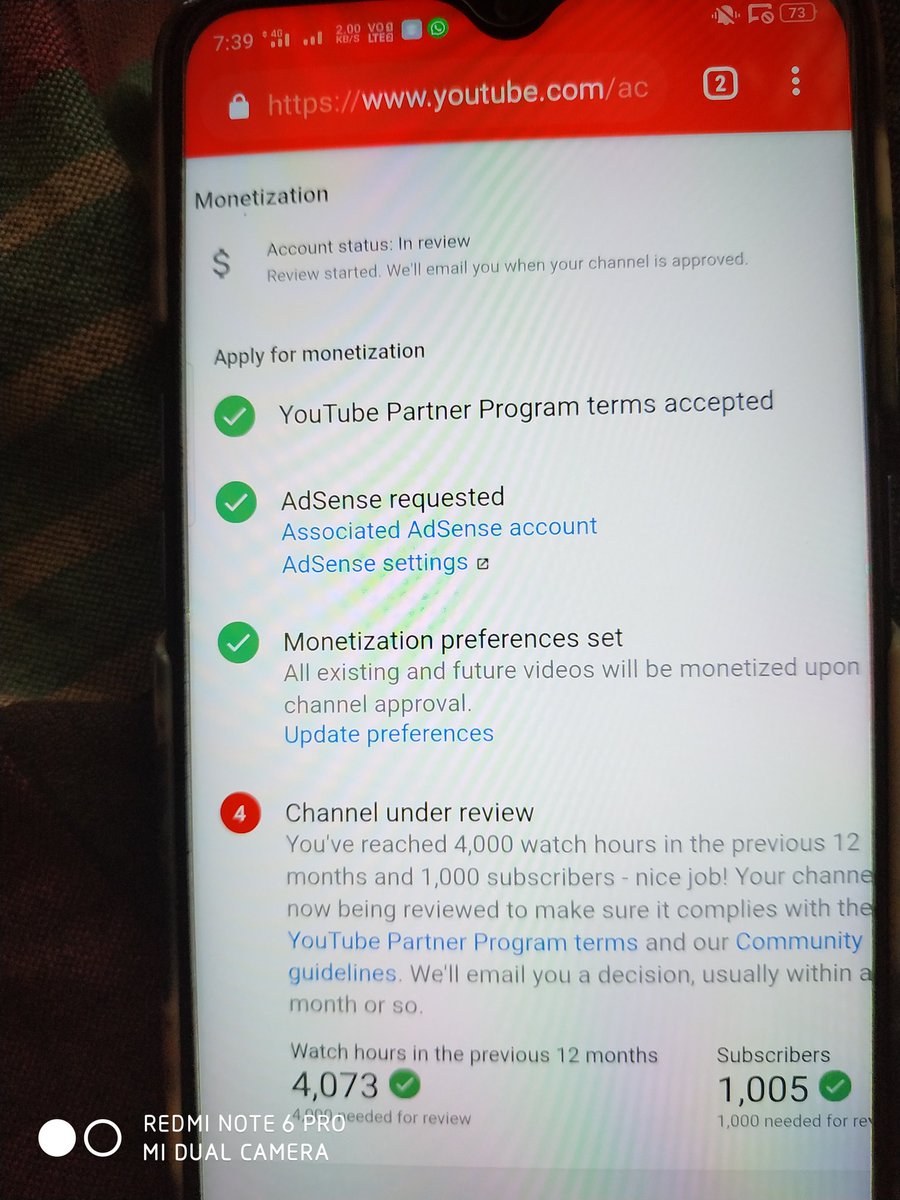 @TeamYouTube my channel was crossed 4k watch time and 1k subscribers but still 15days it shows only channel in review pls help me