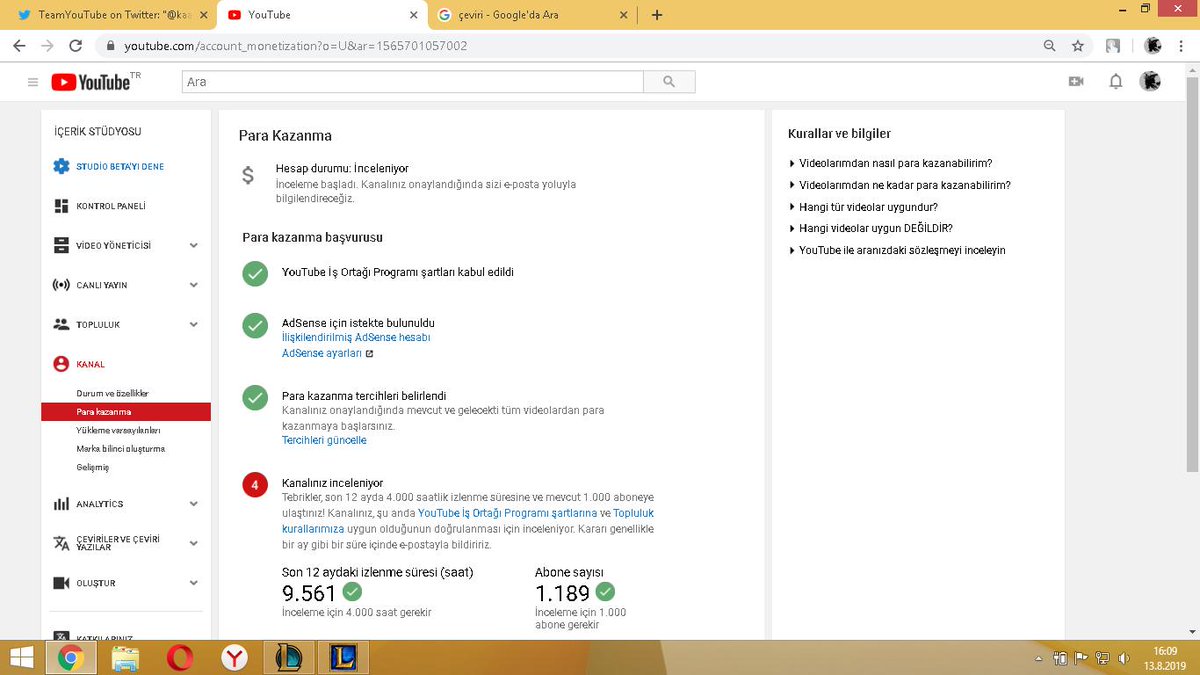 @TeamYouTube I've reached 4000 subscribers and 1000 subscribers. When do I earn money?https://www.youtube.com/channel/UCnBwGIobK85_UPW_rQFsn6w?disable_polymer=true …