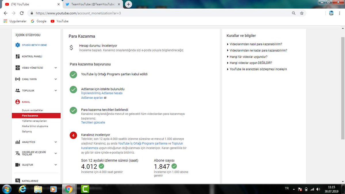 @TeamYouTube I completed 4000 hours and I have 1.847 subscribers. Can you please help me to open my channel for monetize as soon as possible ? https://www.youtube.com/channel/UChTUR-p8VwyAXPQlKnYbSnA …pic.twitter.com/XGHG3g2Zyi