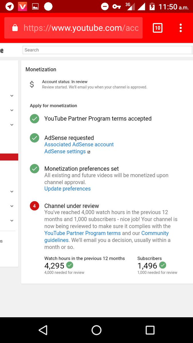 @TeamYouTube My Channel is complete 1000 subscribers and 4000 wach hours in previous 30 day's but my Channel is still under review. please help me. channel URL:https://www.youtube.com/channel/UCBb6nfJ4HfgL5BZajI2hSNg … Thank youpic.twitter.com/f8E26jLOT4