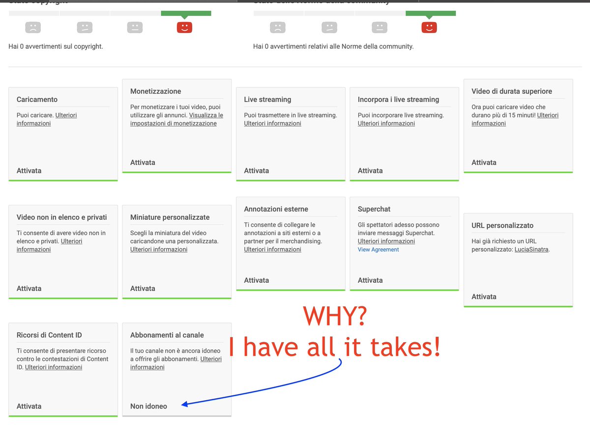 Already double checked, I have all requirements for a channel membership for my subscribers. @SusanWojcicki @YTCreators @YouTube Kindly check manually what is going on 🇮🇹🎙👉🏽 http://www.youtube.com/luciasinatra pic.twitter.com/73j9CggvF4