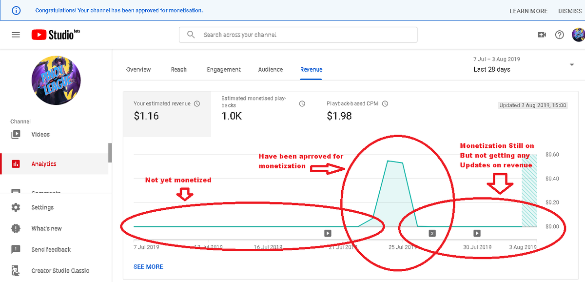 YouTube Analytics data typically displays 24–48 hours after the end of the day Pacific Time, but may sometimes take longer to appear. So, this is normal for Estimated earnings data. Hope this helps clarify!