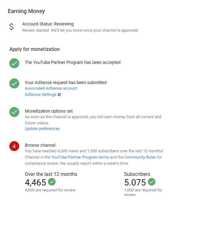 The majority of eligible channels hear back in less than 30 days. Be sure to look out for an email or Studio notification from us! In the meantime, if you’re looking for general info about the review process, check out this help resource: https://yt.be/help/YPP-review