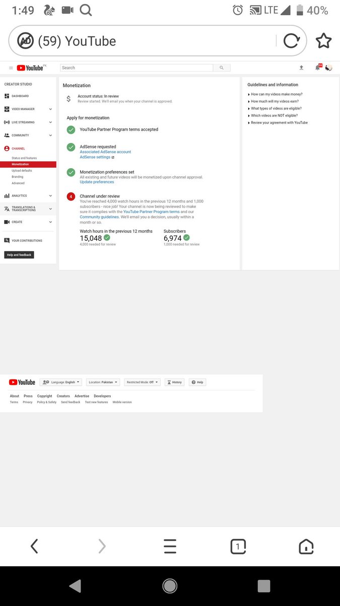 @TeamYouTube dear you tube I have been completed 1000+subscribers and 4000+watch time on my you tube channel in a Time period so I request you to please monetize my channelpic.twitter.com/MqT9pajPND