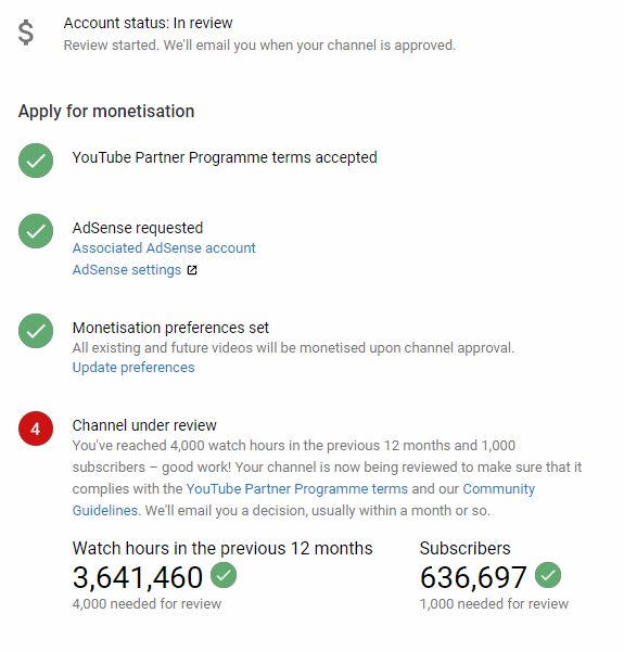 @TeamYouTube hi youtube, I’ve been waiting for monetization for 6 months already, I got subscribers and viewing the time why they don’t give me monetization,how long do I have to wait, please look, channel : https://www.youtube.com/channel/UCdtrw_Te4yKkvQCfb_CmqyQ …pic.twitter.com/XCOqbG7vme