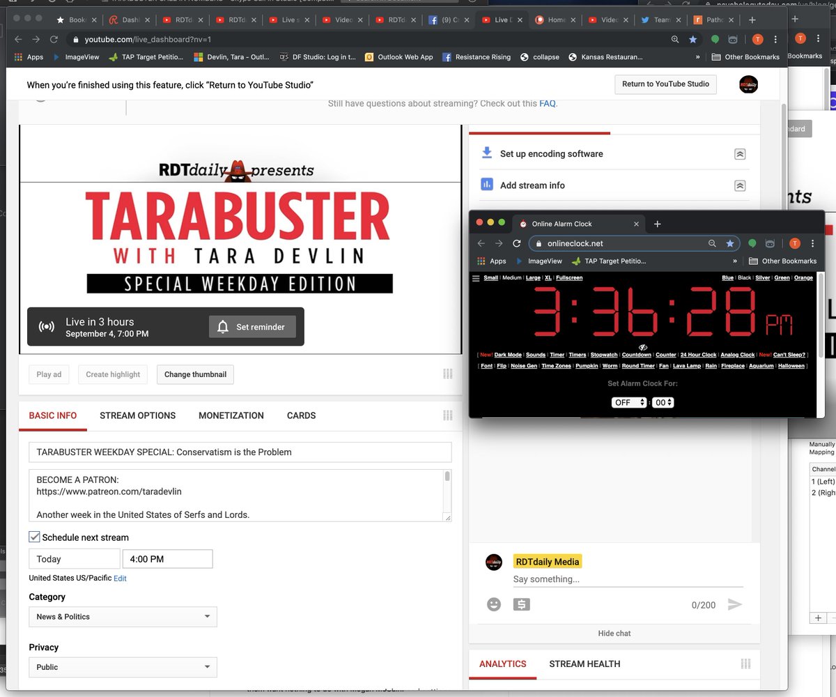 channel: https://www.youtube.com/c/RDTDailyMedia Also, please look into why it Tweets "Tarabuster starts now" every time I set a livestream, though my show won't start for an hour sometimes & I disconnected Twitter? I set that tweet 1 time on Youtube. Didn't mean for it to go out EVERY TIME