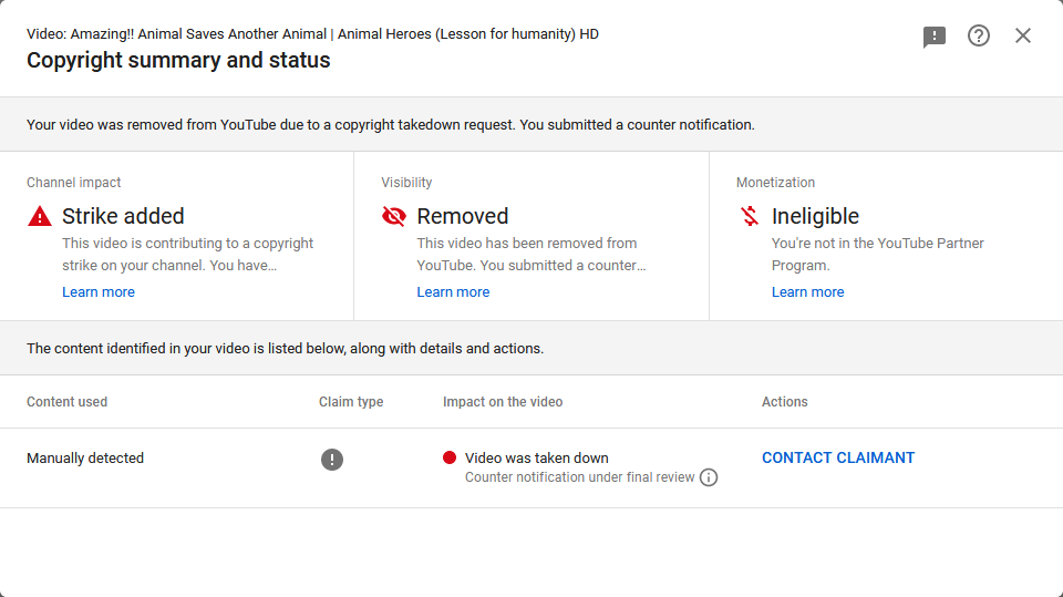 @TeamYouTube i got a copyright strike on a video that was fair use and i submitted a counter notification and now it says Counter notification under final review.. what dose this even mean?pic.twitter.com/KgIGcAs1D1
