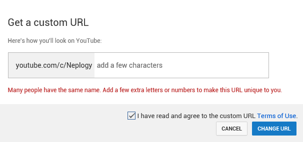 @TeamYouTube i am trying to set my custom url of my channel but when i try to do it says add some character but i don't want to add extra character to my custom url i want only my channel name in my custom url and also there is no such channel which has this custom url.pic.twitter.com/umqYEzEPkL