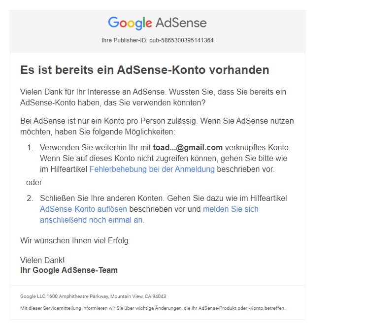 @TeamYouTube Ich habe Probleme mit Adsense und meinen Youtube Konten. Hier das Problem: Wenn ich mich bei Adsense anmelden will kommt immer die Nachricht dass ich schon ein Konto habe. Aber dieses Konto kann ich nicht schließen da ich mich nich Anmelden kann. Bitte um Hilfe. LGpic.twitter.com/NziyWj8KJN