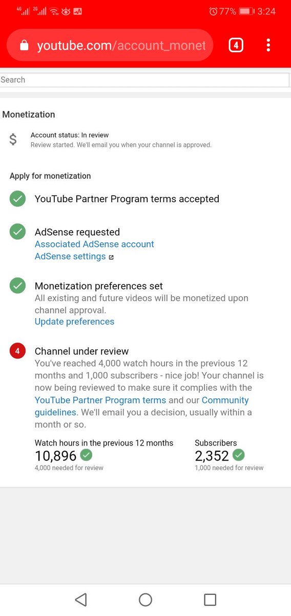 Most creators are reviewed in about a month or so. Each channel is evaluated by our review team, so it may take some time! Hang tight and in the meantime, here’s some more info about the review process: https://yt.be/help/YPP-review
