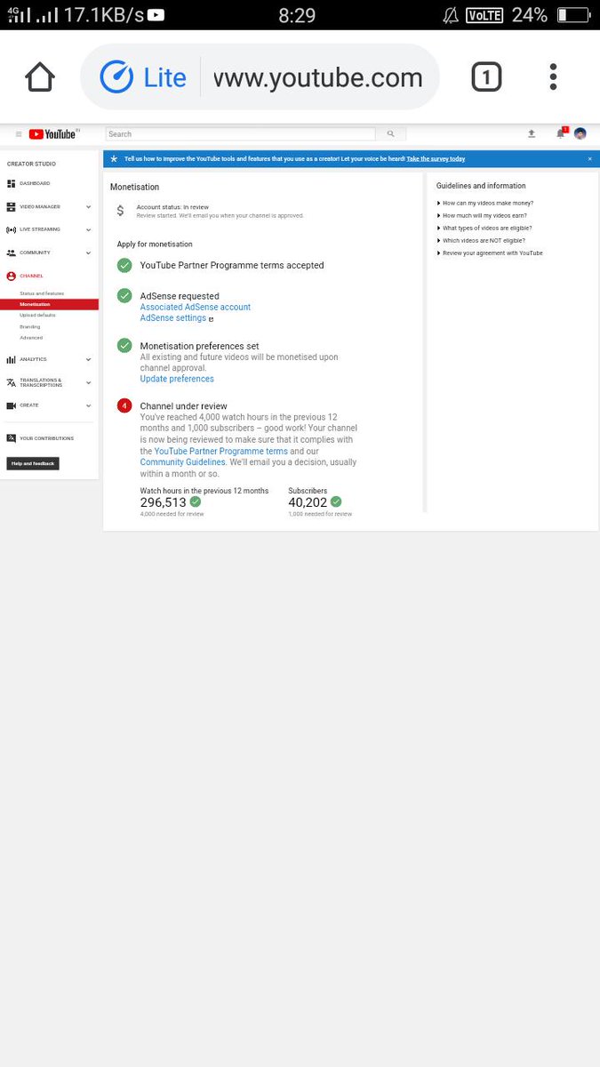 @TeamYouTube Dear Team YouTube I Have already completed 4k hour And 1k subscriber In  previous 365 Days And my channel is under review till one month .but monetization is not enable .please guide us... https://www.youtube.com/channel/UCdpCr3nWRISKq9ACNmh1VGA?app=desktop …pic.twitter.com/hyI9qVPEtI